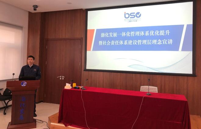 4月19日上午,天津渤化化工發(fā)展有限公司(以下簡(jiǎn)稱渤化發(fā)展)召開(kāi)一體化管理體系建設(shè)優(yōu)化提升暨社會(huì)責(zé)任體系建設(shè)管理層理念宣講會(huì)。渤化發(fā)展公司領(lǐng)導(dǎo)、各部門(mén)、單位負(fù)責(zé)人及體系建設(shè)骨干人員及北京三星九千認(rèn)證中心有限公司(以下簡(jiǎn)稱三星九千)技術(shù)服務(wù)項(xiàng)目組成員共88人出席會(huì)議。